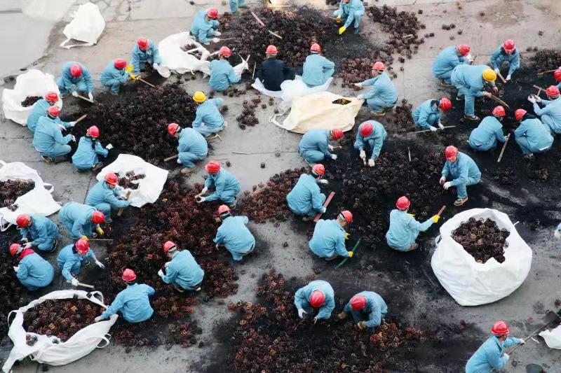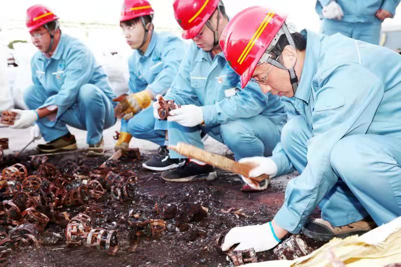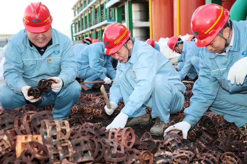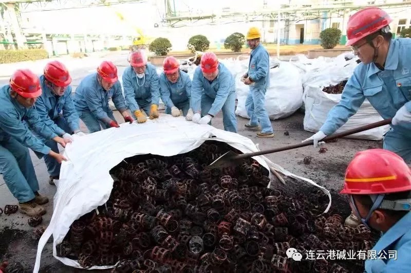 由于清理工作全靠人力完成,崗位人員一邊要維持生產(chǎn),一邊要清理填料,工作量非常大。11月12日下午,公司黨委書記、董事長張衛(wèi)民在調(diào)研重堿車間生產(chǎn)現(xiàn)場時了解到這一情況后,當機立斷,立即組織公司領(lǐng)導(dǎo)及各部門黨員干部義務(wù)勞動,協(xié)助重堿車間完成鮑爾環(huán)填料清理回收工作。