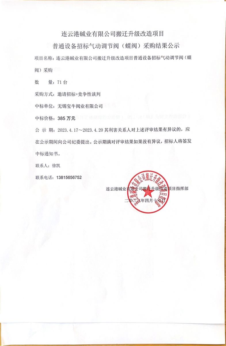 氣動(dòng)調(diào)節(jié)閥(蝶閥)采購結(jié)果公示