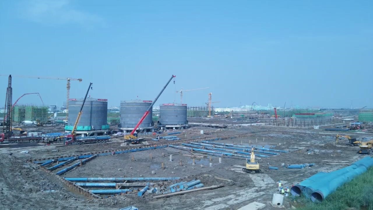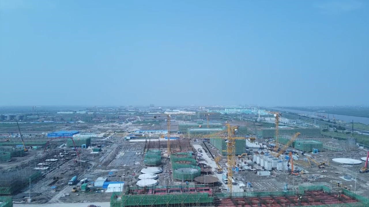 ⑴聯堿一標段101b聯堿辦公樓屋面女兒墻拆模養(yǎng)護;152中心控制室屋面鋼結構進場,砌體施工;151化驗中心四層支撐架搭設;340機電儀維修廠房鋼結構工廠預制,砌體施工;510重堿車間V51301A設備中心筒與溢流箱合攏,氨II澄清桶安裝,母液I澄清桶安裝.管廊基礎防腐回填;532重灰段深基坑回填、水池養(yǎng)護;280b換熱站屋面鋼結構工廠預制。
