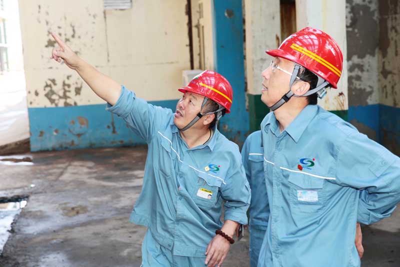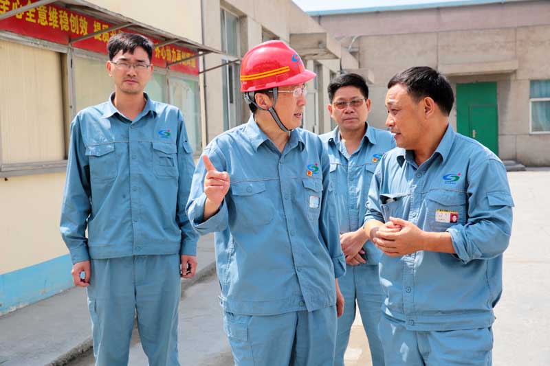 在重堿車間現(xiàn)場(chǎng),張衛(wèi)民囑咐車間負(fù)責(zé)人,在高溫時(shí)節(jié)不僅要抓好生產(chǎn)運(yùn)行,更要注意酷暑天氣下安全管理和員工的身體健康。