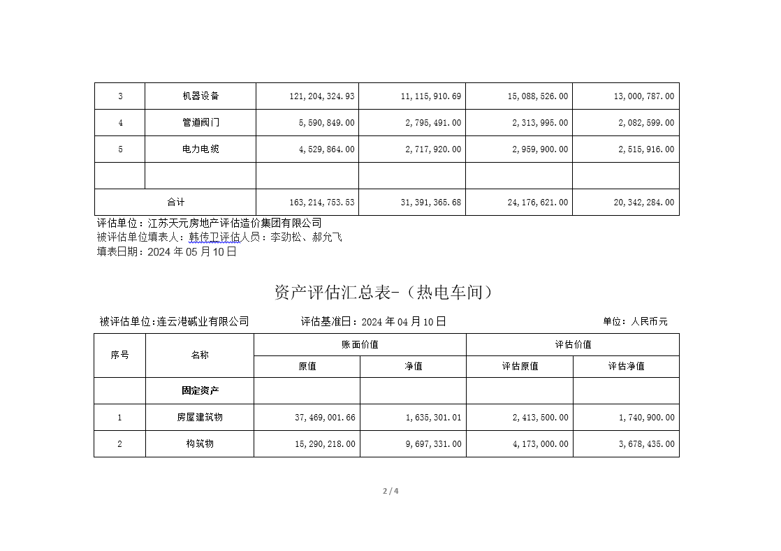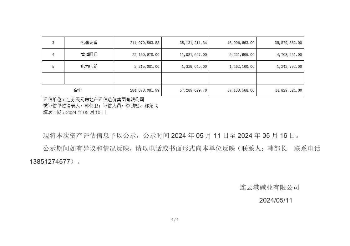 連云港堿業(yè)有限公司煅燒、熱電、重堿車間資產(chǎn)評估公示