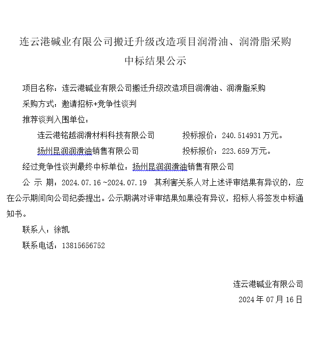 潤(rùn)滑油、潤(rùn)滑脂采購(gòu)中標(biāo)結(jié)果公示
