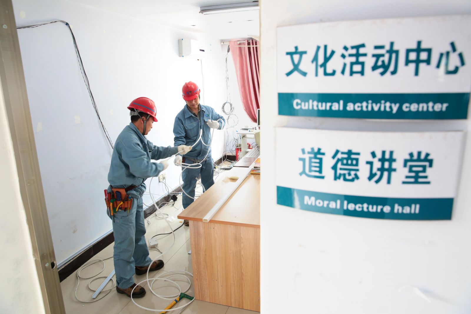 3月28日,公司電儀車間黨支部組織電氣專業(yè)技術(shù)人員到贛榆區(qū)班莊鎮(zhèn)孫凈埠村,為村里的文化活動中心和道德講堂排布線路,整理雜亂的電源線,消除用電安全隱患,獲得村民一致好評。