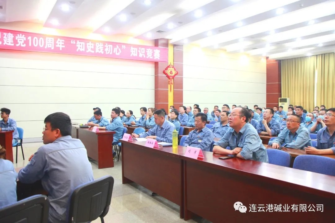 為慶祝中國共產(chǎn)黨成立100周年,激勵(lì)公司全體黨員干部更好地學(xué)習(xí)黨史知識(shí)、領(lǐng)悟黨史知識(shí),6月10日,公司成功舉辦“知史踐初心”黨史知識(shí)競賽活動(dòng)決賽,管理五、電儀、銷售、質(zhì)檢、鹽水制鈣、運(yùn)輸?shù)攘鶄€(gè)支部參加決賽,公司領(lǐng)導(dǎo)班子成員及全體中層干部、分會(huì)主席、支部黨員代表觀看比賽。